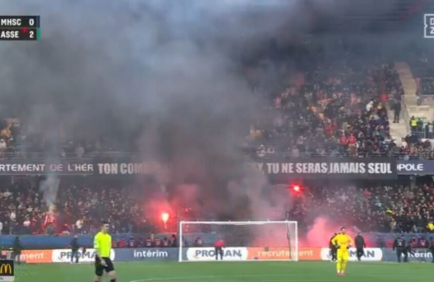 ونشبت فوضى عارمة في المدرجات بعد تلقي شباك مونبلييه الهدف الثاني في وقت مبكر من زمن الشوط الثاني للقاء، حيث بدأ بعض مشجعي أصحاب الأرض إلقاء الألعاب النارية إلى أرضية ملعب “دو لا موسون” وإشعال النيران.