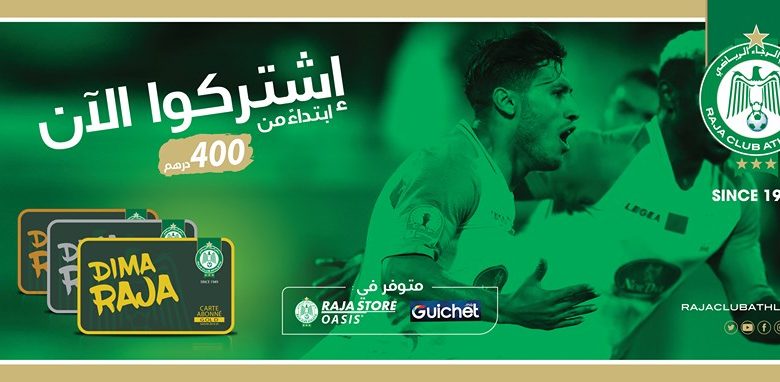 قرر المكتب المسير لفريق الرجاء الرياضي طرح بطائق اشتراك للبيع بقيمة 300 درهم، ستمكن مقتنيها من الحصول على بطاقة مع قميص الفريق.