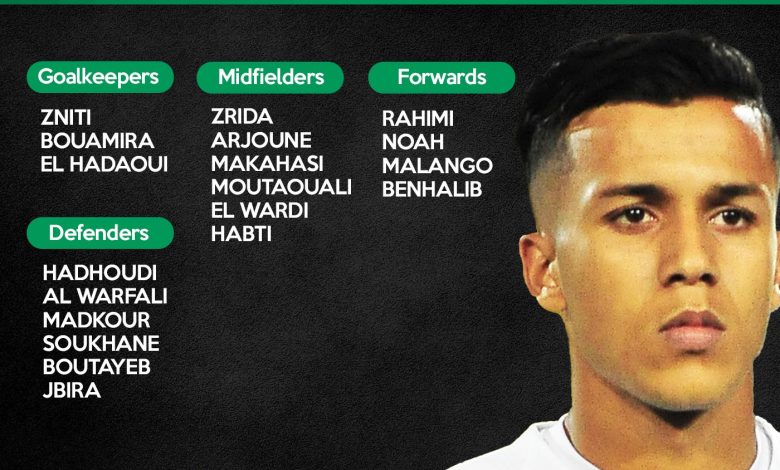 وأشرك سلامي في التشكيلة الرجاء الرسمية 3 مدافعين من مدرسة الرجاء وهم عمر بوطيب، وأسامة سكحال، ومروان الهدهودي، فيما أشرك في خط الوسط محد زريدة، وزميله عمر العرجون.