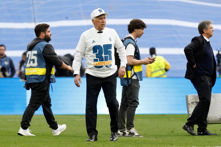 حصد ريال مدريد لقب دوري الدرجة الأولى الإسباني -اليوم السبت- ليصبح الإيطالي كارلو أنشيلوتي أول مدرب يحصد ألقاب المسابقة في البطولات الأوروبية الخمسة الكبرى في إنجلترا وإسبانيا وألمانيا وإيطاليا وفرنسا.
