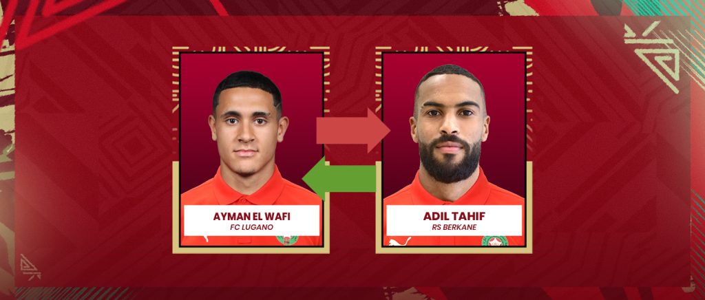 وتم استدعاء اللاعب عادل تاحيف ، لتعويض غياب أيمن الوافي الذي رفض فريقه لوغانو السويسري التحاقه بالمنتخب الوطني، بدعوى أن تاريخ الألعاب الأولمبية لا يدخل ضمن تواريخ الاتحاد الدولي لكرة القدم.