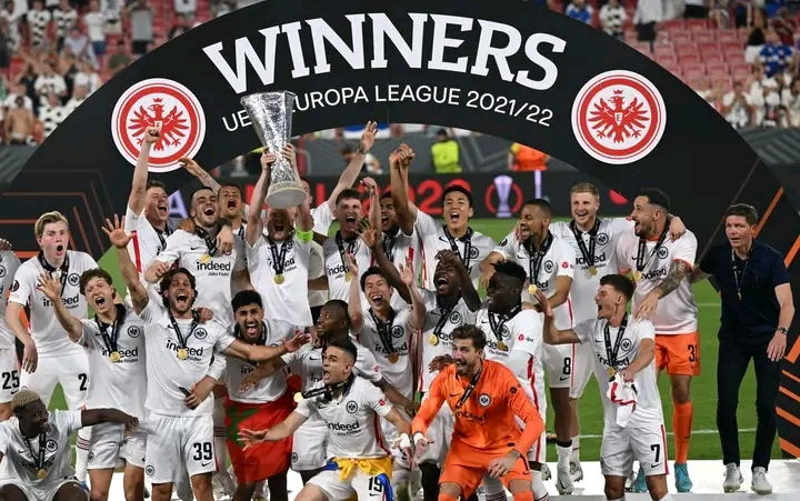 توج آينتراخت فرانكفورت الألماني بطلا لمسابقة الدوري الأوروبي بفوزه في المباراة النهائية على غلاسكو رينجرز الإسكتلندي بركلات الترجيح 5-4 بعد نهاية الوقتين الأصلي والإضافي 1-1.