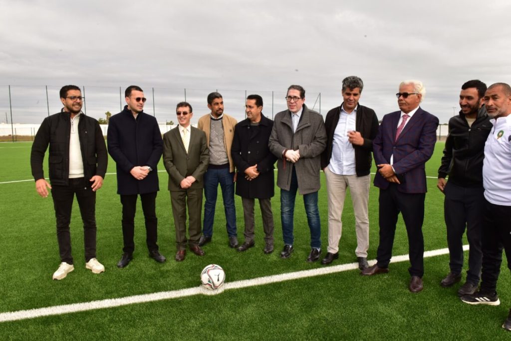 ومثًل الجامعة الكرة في حفل تسليم الملعب، كل من السيدين عبد المالك أبرون، رئيس لجنة البنيات التحتية بالجامعة الملكية المغربية لكرة القدم، وحكيم دومو عضو المكتب المديري للجامعة.