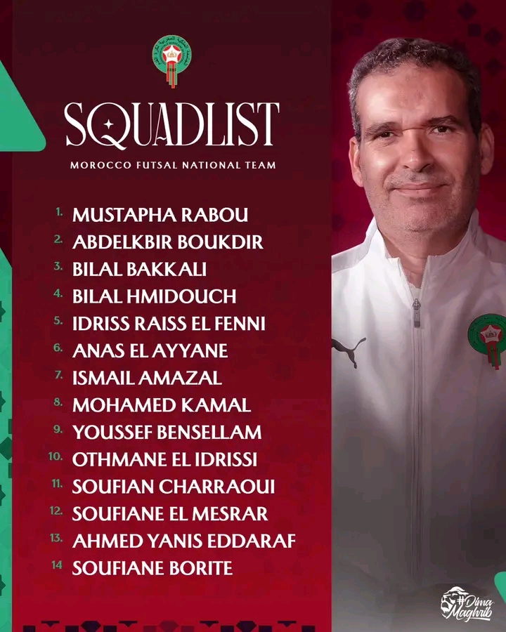أعلن هشام الدكيك، مدرب المنتخب الوطني لكرة القدم داخل القاعة، عن اللائحة الرسمية للاعبين الذين سيمثلون المغرب في منافسات دورة ألعاب التضامن الإسلامي 2025، التي تحتضنها المملكة العربية السعودية خلال الفترة الممتدة من 4 إلى 21 نونبر 2025.