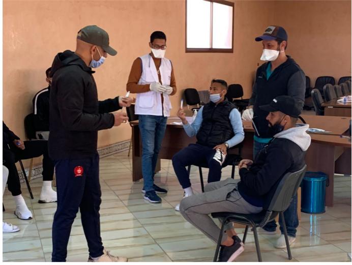 وأخضع فريق الكوكب المراكشي لاعبيه وأطقمه وبعض المرافقين، لفحوصات كورونا، اتباعا للبروتوكول الصحي الذي فرضته الجامعة الملكية المغربية لكرة، الذي يقتضي الخضوع للتحاليل المخبرية كل 15 يوما بالنسبة لجميع النوادي الممارسة بالبطولة الاحترافية بقسميها.