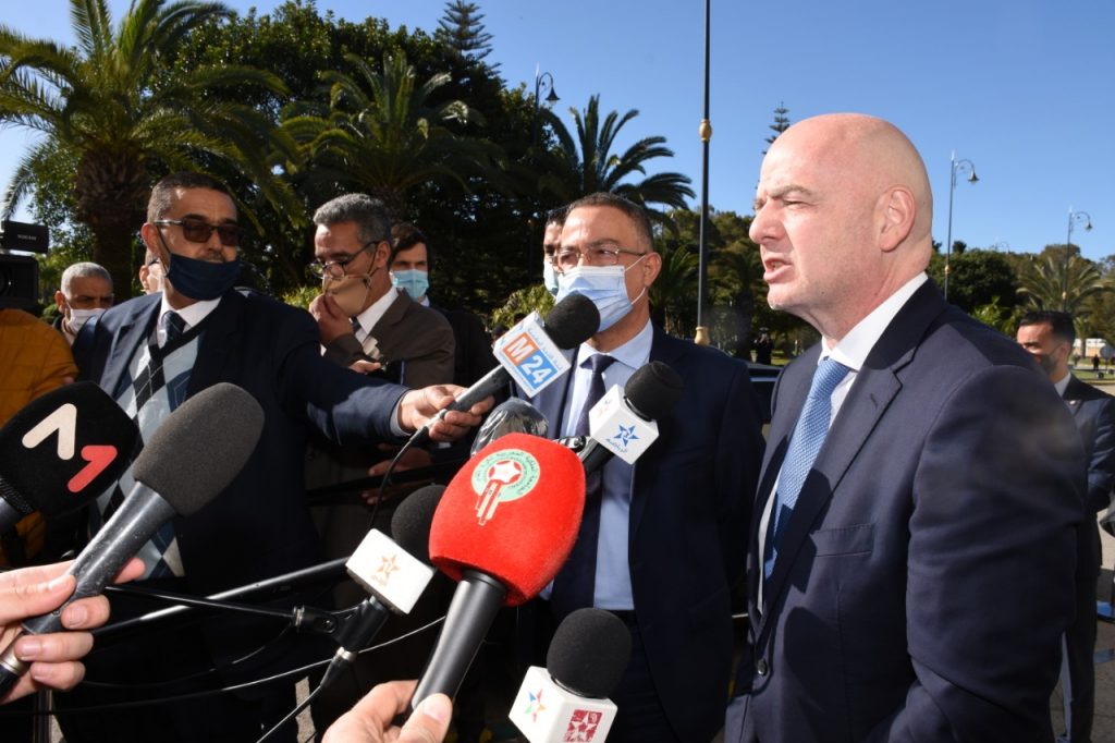 وقال انفانتينو في تصريحات صحفية، إن المغرب بلد رئع، سيما وأنه يعد من بين البلدان الكبيرة على مستوى كرة القدم، موضحا أنه حلوله بالمغرب يأتي في إطار زيارة عمل لمناقشة مع فوزي لقجع وفريق عمله، مجموعة من المشاريع المتعلقة بمستقبل الممارسين المغاربة والأفارقة على حد سواء.