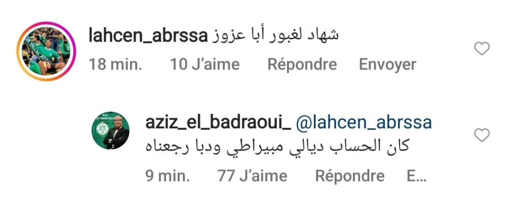 ورد البدراوي عن سؤال أحد محبي الرجاء عن أسباب غيابه عن “الانستغرام”، بقوله :”كان الحساب ديالي مبيراطي ودبا رجعناه”.