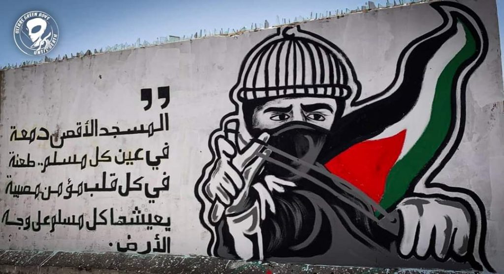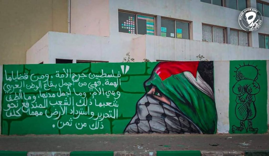وأنجزت الغرين جداريات رائعة، وفيديو، جميل يعبر عن موقفها من القضية الفلسطينية ونصرتها للشعب المستضعف وفيما يلي بلاغ الالترات: