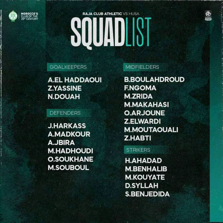 وفي ما يلي لائحة الرجاء الرياضي المستدعاة لمواجهة حسنية أكادير: