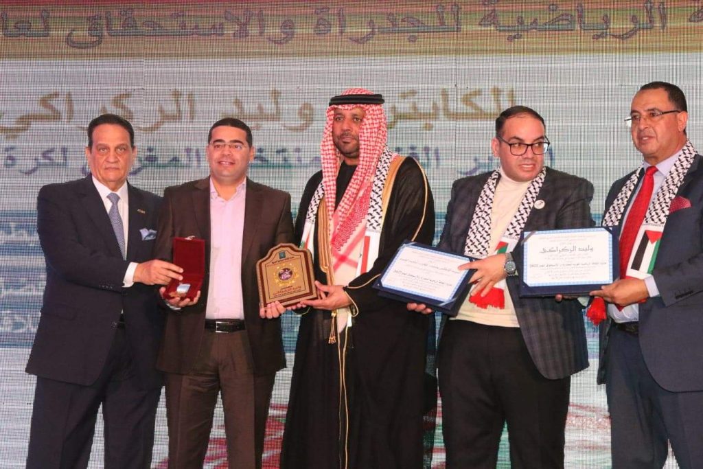 وتسلم جوائز التكريم، نيابة عن المنتخب المغربي، والناخب الوطني وليد الركراكي، والنجم عزيز بودربالة، الزميل محمد أجي، عضو المكتب التنفيذي للرابطة المغربية للصحافيين الرياضيين، التي تعد من مكونات أسرة الاتحاد العربي للثقافة الرياضية، الذي يتولى فيه الزميل عبد اللطيف المتوكل منصب نائب للرئيس.