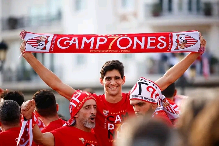 فيديو.. هكذا احتفل بونو والنصيري بلقب اليوروباليغ مع جماهير إشبيلية