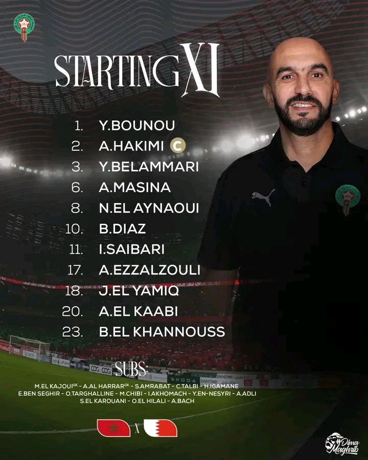 أعلن وليد الركراكي، مدرب المنتخب المغربي، عن تشكيلة النخبة الوطنية التي ستواجه مساء يوم الخميس 9 أكتوبر 2025 منتخب البحرين، في لقاء ودي سيُجرى على أرضية المجمع الرياضي الأمير مولاي عبد الله بمدينة الرباط.