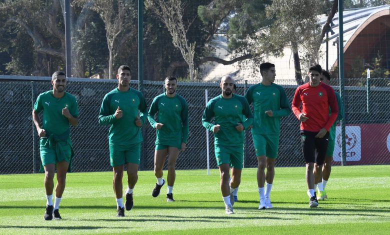 وعرفت الحصة المذكورة، مشاركة جميع العناصر الوطنية بإستثناء يوسف مالح لاعب فيورنتينا الإيطالي، الذي يستمر في متابعة برنامجه الخاص رفقة الطاقم الطبي بالإضافة إلى يوسف النصيري الذي غادر التجمع الإعدادي للأسود في اتجاه إسبانيا.