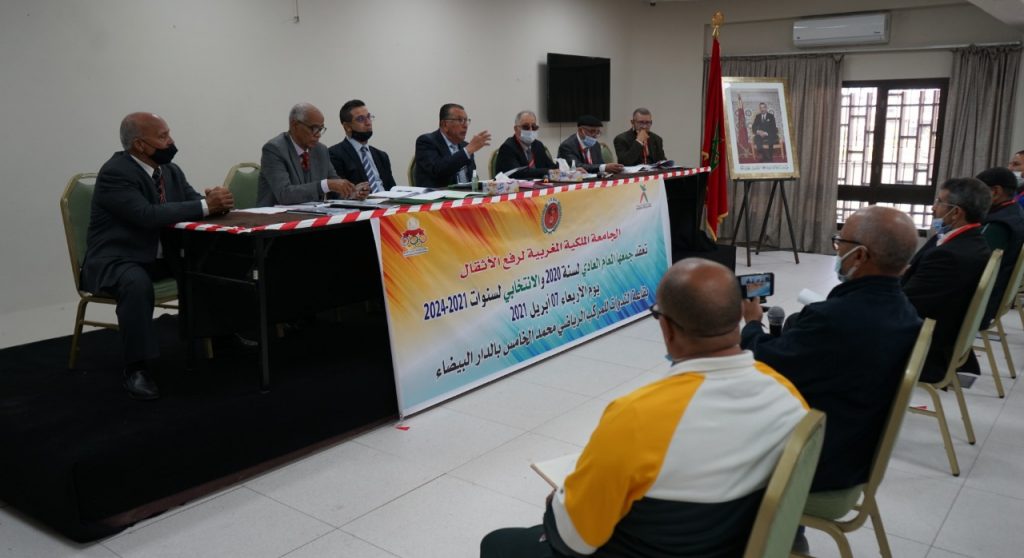 احتضنت قاعة الندوات التابعة للمركب الرياضي محمد الخامس بالبيضاء خلال الأسبوع الماضي، فعاليات الجمع العام العادي السنوي لسنة 2020، والجمع العام الانتخابي (2021-2024) للجامعة الملكية المغربية لرفع الأثقال، بحضور جميع الاندية المنضوية تحت لواء الجامعة والبالغ عددها تسعة عشر ناديا.