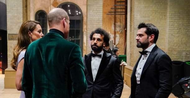 وحضر صلاح في الحفل رفقة وكيل أعماله، رامي عباس، وشوهد وهو يتحدث مع الأمير ويليام وزوجته كاثرين، دوقة كامبريدج.