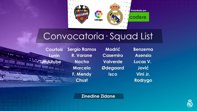 وجاءت قائمة ريال مدريد لمواجهة ليفانتي كالتالي: