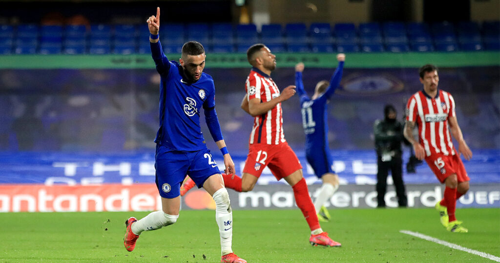 تمكن فريق تشيلسي الانجليزي بحضور الدولي المغربي حكيم زياش، من تحقيق فوز مستحق على ضيفه فريق اتليتيكو مدريد الاسباني، في دوري عصبة الأبطال، بهدفين لصفر.