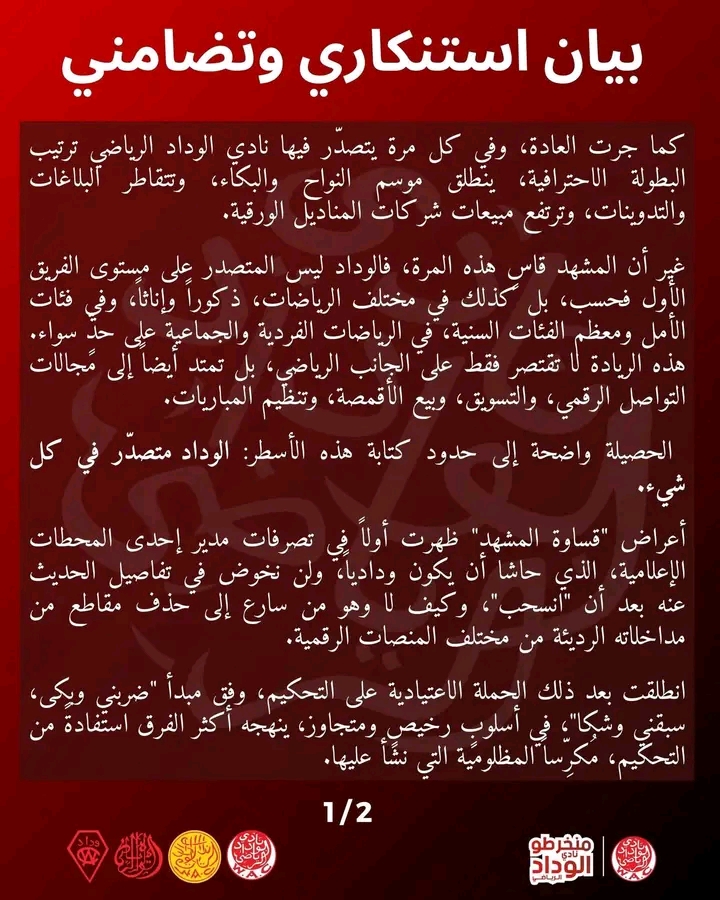 بلاغ استنكاري وتضامني من منخرطو الوداد ردا على منخرطي الرجاء