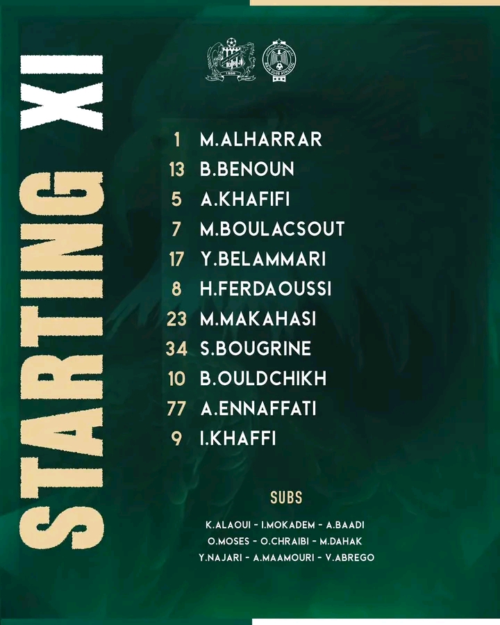 وفيما يلي التشكيلة الرسمية للرجاء الرياضي: