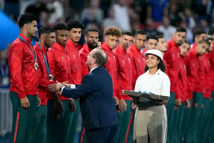 تسلم لاعبو المنتخب الأولمبي يومه الجمعة 9 غشت 2024 الميدالية البرونزية بعد احتلالهم الرتبة الثالثة ضمن منافسات الألعاب الاولمبية التي تحتضنها باريس.