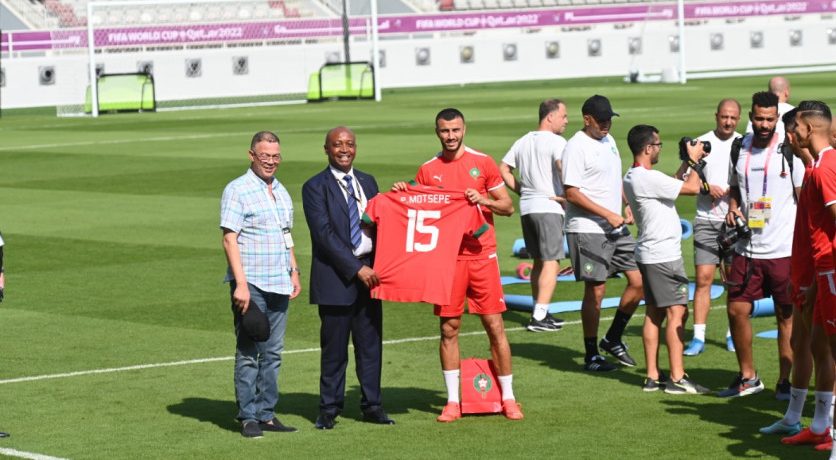 فاجأ لاعبو المنتخب الوطني المغربي، باتريس موتسيبي رئيس الاتحاد الإفريقي لكرة القدم، خلال زيارته لتداريب الأسود صباح اليوم، من أجل دعمهم قبل مواجهة المنتخب الكرواتي يوم الأربعاء المقبل.