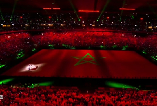 وتظهر الدقيقة الرابعة و25 ثانية، لحظة عزف النشيد الوطني المغربي، وذلك بحضور أمير دولة قطر بن حمد آل ثاني، ورئيس الإتحاد الدولي لكرة القدم “فيفا”، جياني انفانتينو، وغيرها من الشخصيات البارزة.