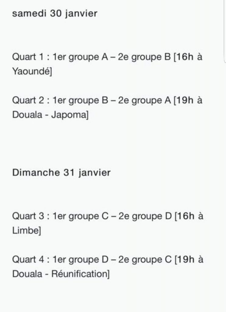 وفي حال نجاح المنتخب الوطني في التأهل إلى المربع الذهبي متصدرا لمجموعته فسيواجه المتأهل عن المباراة الثانية للدور الربع والتي ستجمع متصدر المجموعة الثانية (تضم: منتخبات جمهورية الكونغو، النيجر، ليبيا، الكونغو) بالمحتل للمركز الثاني في المجموعة الأولى (تضم: الكاميرون، مالي، بوركينافاصو، زيمبابوي).