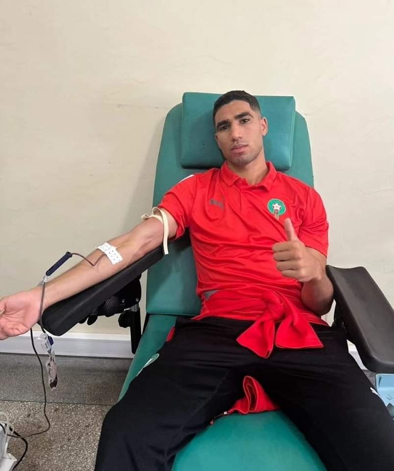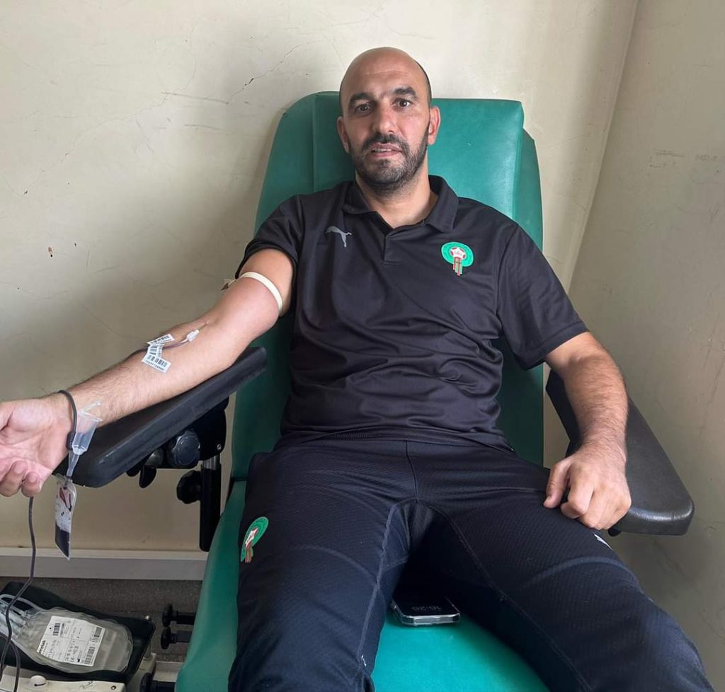 وقرر أعضاء المنتخب الوطني من لاعبين وطاقم تقني، التوجه إلى المركز الجهوي لتحاقن الدم بأكادير، من أجل التبرع بدمائهم لمساعدة ضحايا الزلزال الذي ضرب منطقة الحوز.
