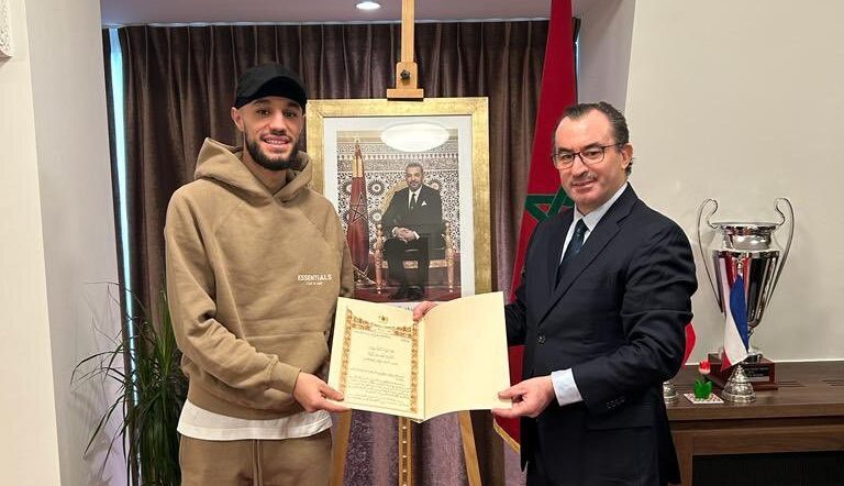 استلم الدولي المغربي نصير مزراوي لاعب فريق بايرن ميونخ الألماني، رسالة ملكية وجهت للاعب بعد مشاركته في انجاز الأسود في مونديال قطر 2022، عبر القنصلية المغربية بأمستردام.