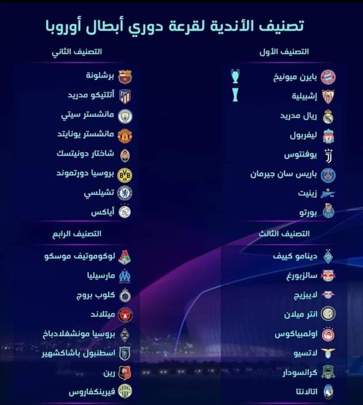 تجرى اليوم الخميس قرعة دور المجموعات ببطولة دوري أبطال أوروبا بمدينة جنيف السويسرية.