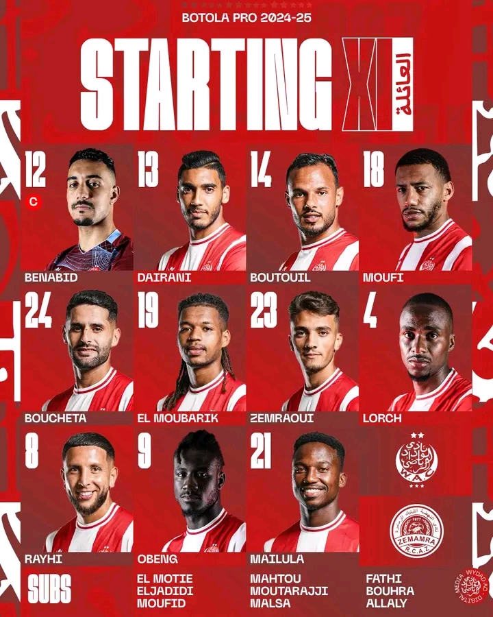 التشكيلة الأساسية للوداد لمواجهة نهضة الزمامرة